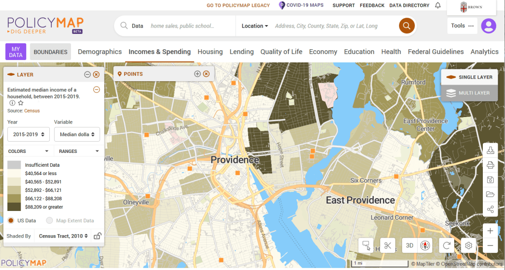 PolicyMap Displaying ACS Income Data for Providence, RI