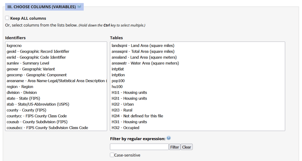 Unlike other applications where you download data that’s prepackaged in tables, Uexplore allows you to create targeted, customized extracts where you can pick and choose variables from multiple tables. While the interface looks daunting at first, it’s not bad once you get the hang of it, and it offers tremendous flexibility and ample documentation to get you started. This is a good option for folks who want customized extracts, but are not coders or API users.