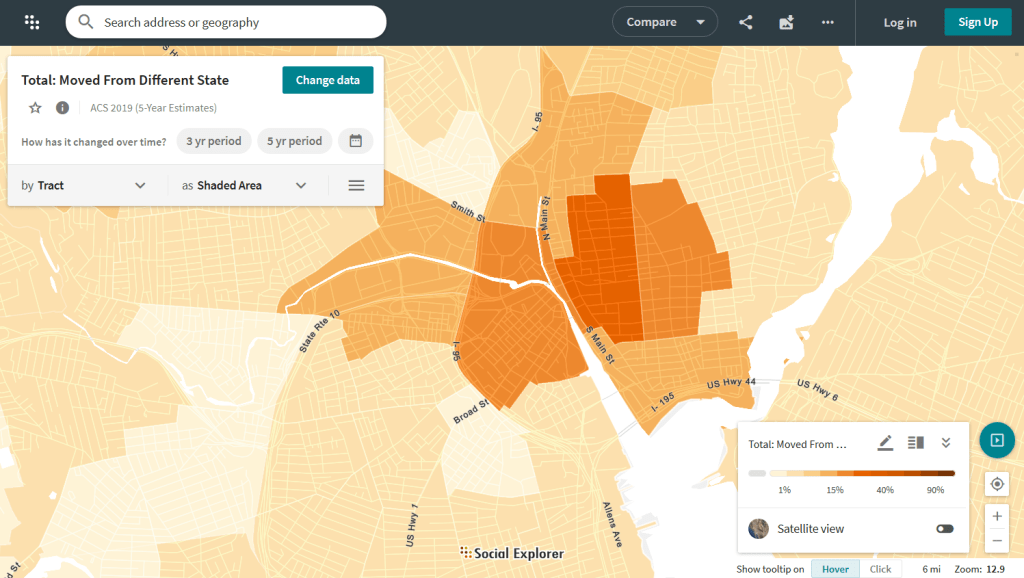 Social Explorer Map Displaying ACS Migration Data for Providence, RI