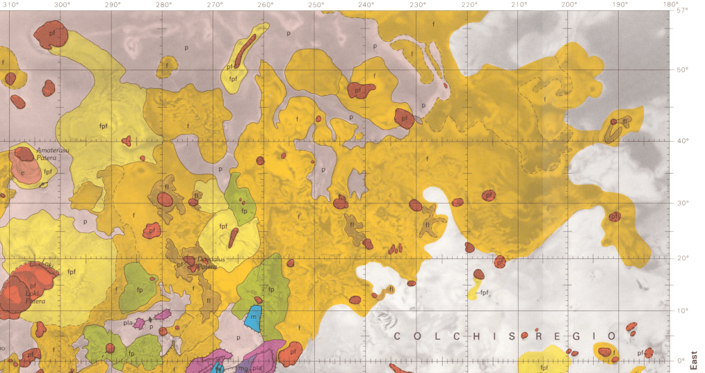 For example, the IMAP series includes special investigation maps that cover tectonic, geologic, mineral, topographic, and bathymetric maps of specific small or regional areas in the US. They also include maps of Antarctica, special investigations in other countries, the moon, and other planets and moons. Every report / map has a landing page with a permanent URL and doi that uses the series number of the map, with links to a PDF of the map as well as a Dublin Core metadata record. For example, here’s a Geologic Map of Io from 1992, part of the IMAP series.