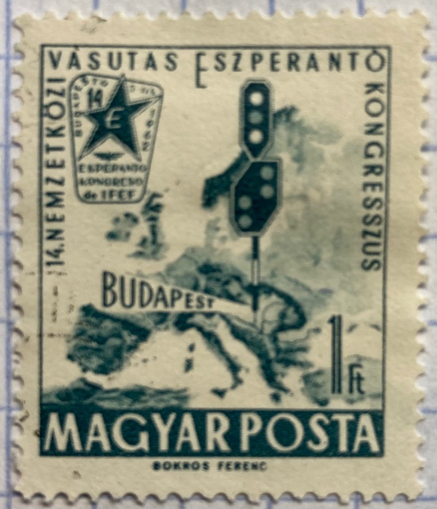You can emphasize specific locations by modifying the extent and scale of a map. This 1960s stamp from Hungary emphasizes the location of its capital city Budapest as being in the center of Europe. The railroad traffic light and prominent label draw your eye right to the location, while simultaneously blotting out surrounding areas (of lesser importance). Clearly there is no better place for hosting the… Esperanto Congress.