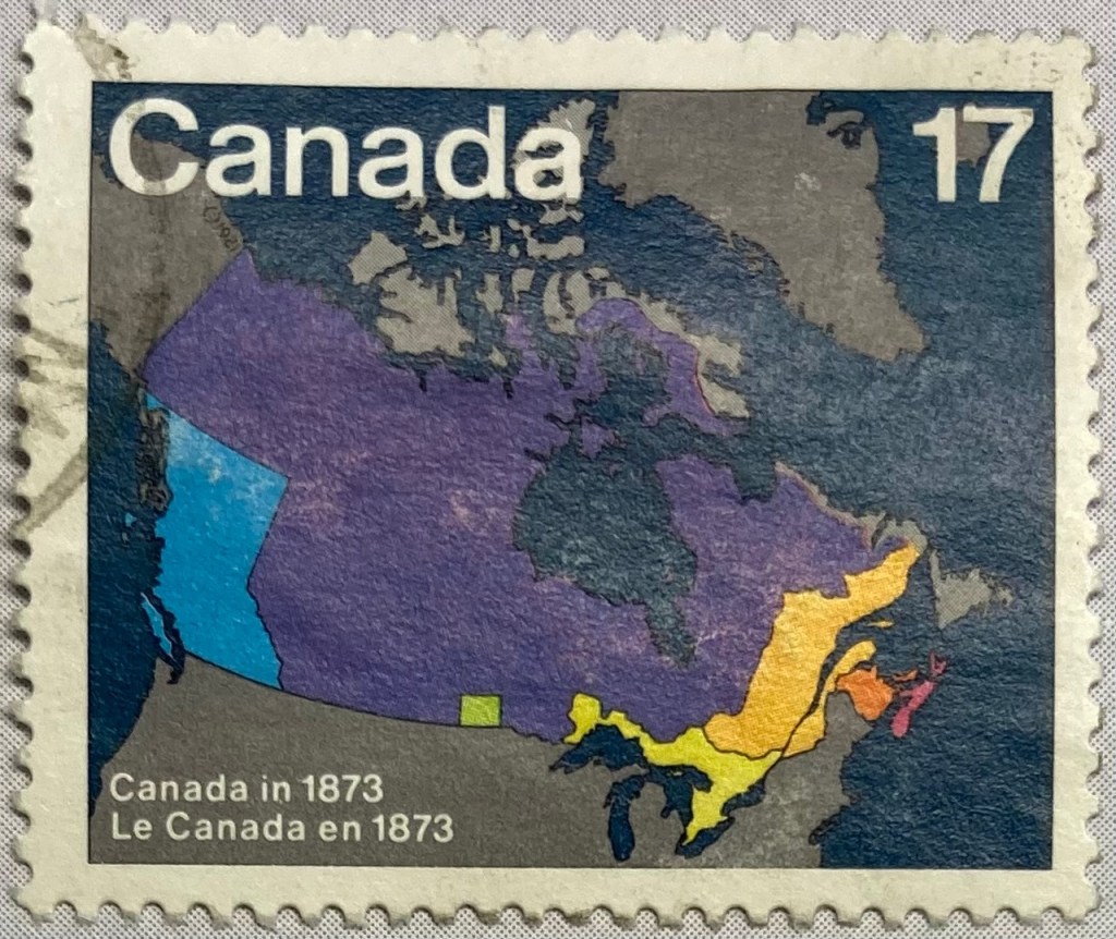 The depiction of places and administrative subdivisions on stamps is a common theme, particularly in nations that are federated states. Canada issued a series of stamps in 1981 that illustrate the evolution of the nation from individual settlements and colonies into provinces and territories that formed the Canadian Confederation. Each stamp represents a specific point in time.