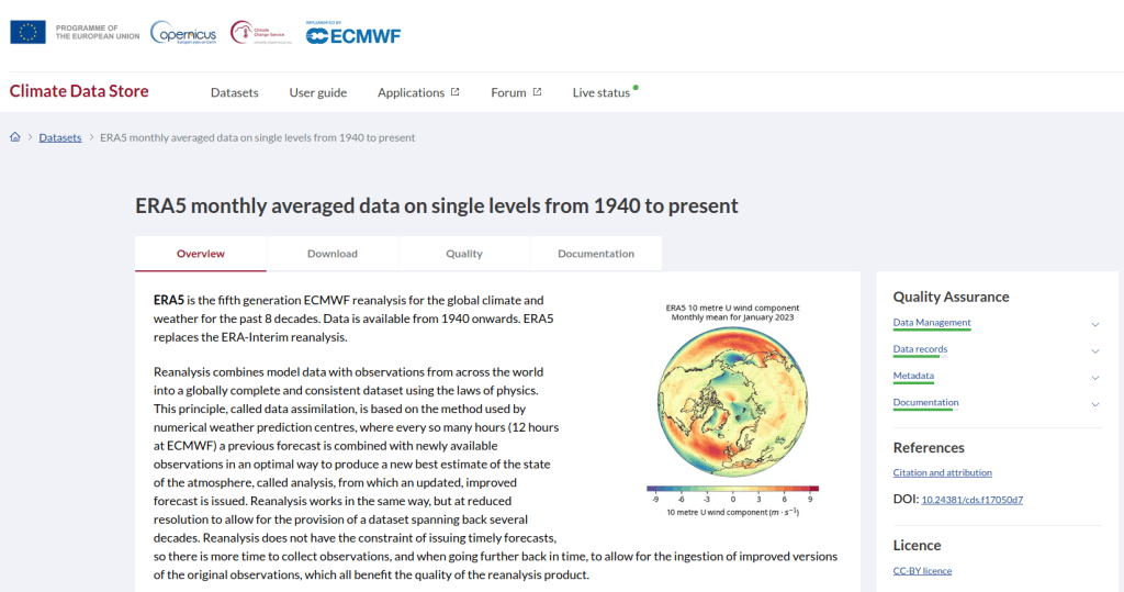This time around, I am working with global climate data from ERA5, produced by the European Centre for Medium-Range Weather Forecasts (ECMWF). I needed to extract all monthly mean temperature and total precipitation values for a series of points within a range of years. Each point also had a specific date associated with it, and I had to store the month / year in which that date fell in a dedicated column. The ERA5 data is packaged in a single GRIB file, where each observation is stored in sequential bands. So if you download two full years worth of data, band 1 would contain January of year 1, while band 24 holds December of year 2. This process was going to be a bit simpler than my previous project, with a few new things to learn.